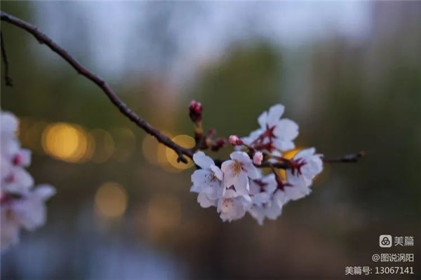 傍晚时分,利用夕阳西下时的余光,远处的灯光光源,拍摄出来的樱花有一种神秘感和特殊的效果,梦幻的光斑,增加了画面的朦胧、梦幻感,使画面更有意境,浪漫的气息扑面而来。