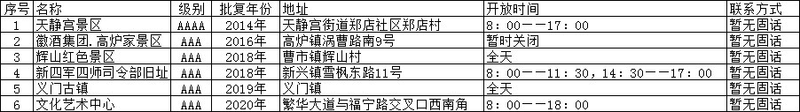 涡阳县A级旅游景区基本情况