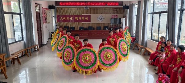 没有服装,何芳琴自己出资购买;没有表演道具,几个热心的共同集资;没有技术指导,到县、镇聘请老师;没有场地,协调在村文化讲堂活动。除了农忙时间,他们几乎都在排练、演练,偶尔晚上还要加个“延时服务”。很快,团队成员发展到36人,平均年龄64岁。服务队演出组还把排练场搬到村文化广场,免费教村民跳健身操、腰鼓舞、唱戏、文艺表演。