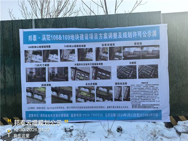 项目名称:邦泰·涡阳108&109地块建设项目方案调整及规划许可公示