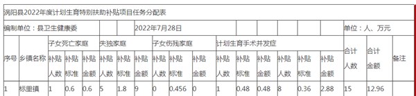 | 名称: | 涡阳县标里镇2022年度计划生育特别扶助补贴项目任务分配表 |