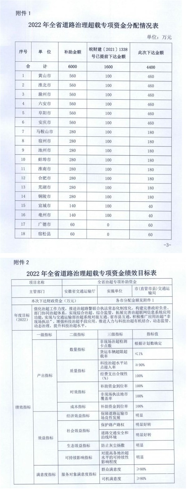 | 名称: | 安徽省财政厅 安徽省交通运输厅关于下达2022年全省道路治理超载专项资金的通知 | 文号: | 无 |