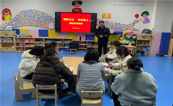 安全是生命之本,为扎实推进消防安全工作,为进一步加强我园教职工的消防安全意识,全力普及消防安全知识,推进幼儿园消防安全工作,2023年12月11日下午,我园邀请了陈教官为全体教职员工开展了消防安全培训活动。
