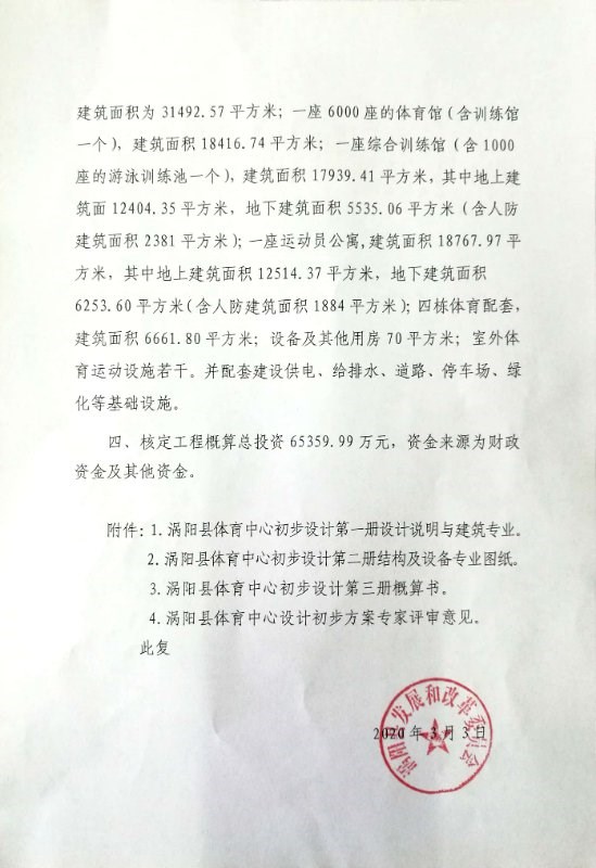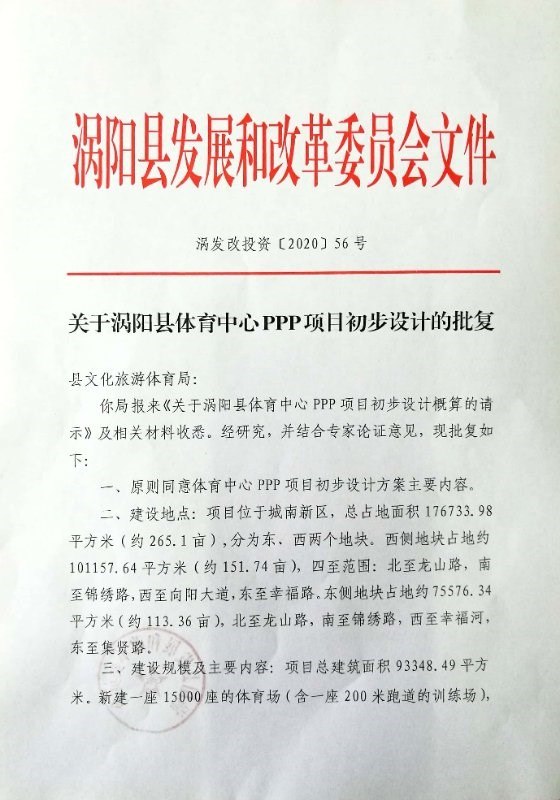 | 名称: | 关于涡阳县体育中心PPP项目初步设计的批复 |
