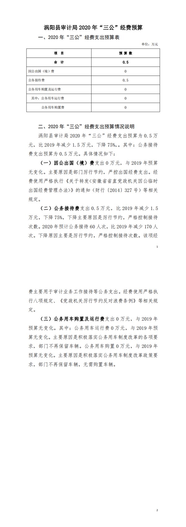 涡阳县审计局2021年一般公共预算“三公”经费预算