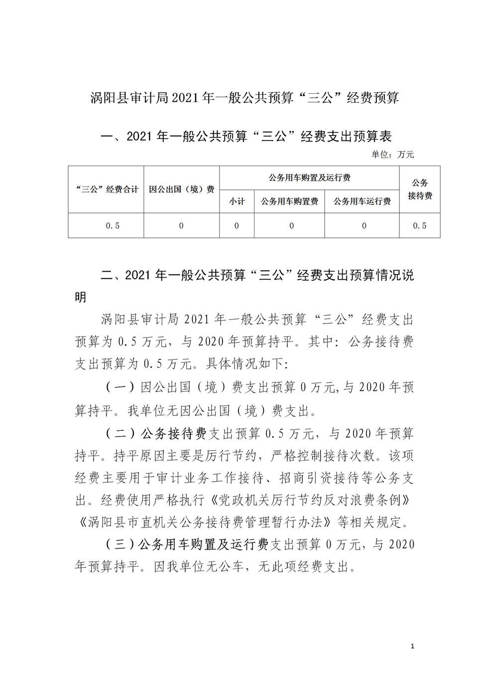 涡阳县审计局2021年一般公共预算“三公”经费预算