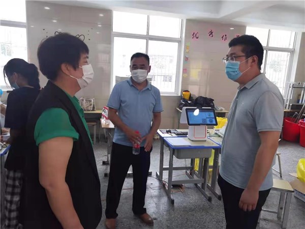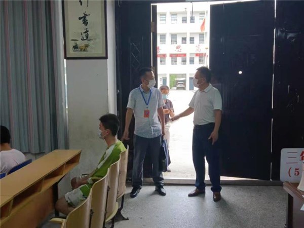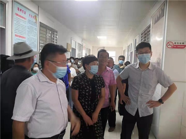 涡阳县教育工委副书记、教育局局长黄艳武陪同县委常委、副县长唐建友到曹市中学督查疫苗接种工作