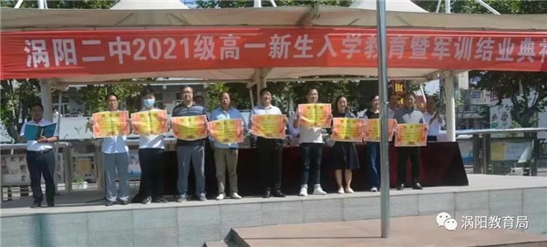 9月8日上午,涡阳二中举行2021级学生军训结业典礼。1200名高一新生容光焕发、精神抖擞,齐聚二中操场。