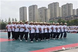 会操展演中,由全体教官组成的精彩示范表演引起现场阵阵声浪;高一年级十四个连队整齐的队形、铿锵的步伐、飒爽的英姿,展现了新时代青少年朝气蓬勃、昂扬向上的精神风貌。