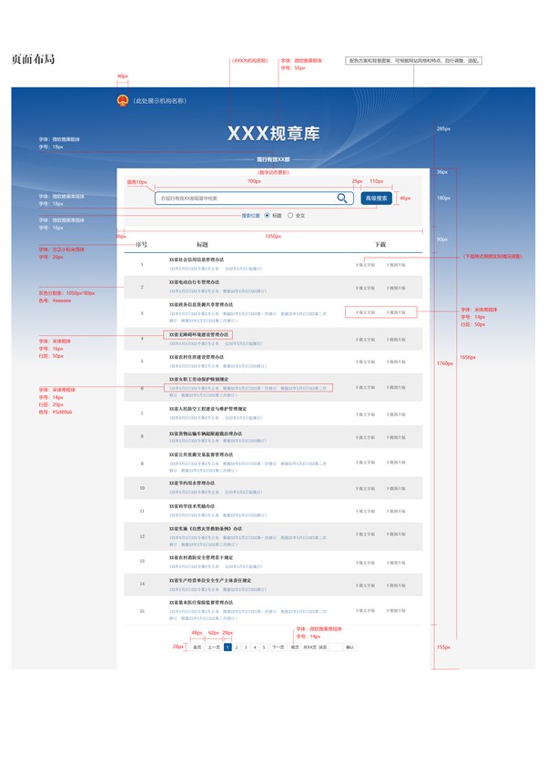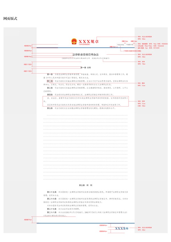 规章网页版式、下载版式及专栏页面设计方案
