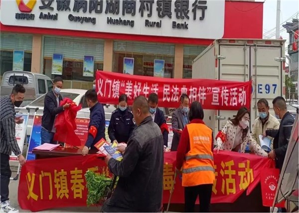 为进一步营造全社会学习民法典的宣传热潮,推动民法典走进群众生活,5月12号下午,义门镇综治中心、司法所、派出所、妇联联合在龙兴路开展“美好生活 民法典相伴”普法宣传活动。司法所工作人员现场发放了《民法典》宣传资料、宣传袋300余份,展板8块,并解答法律咨询4余人次。