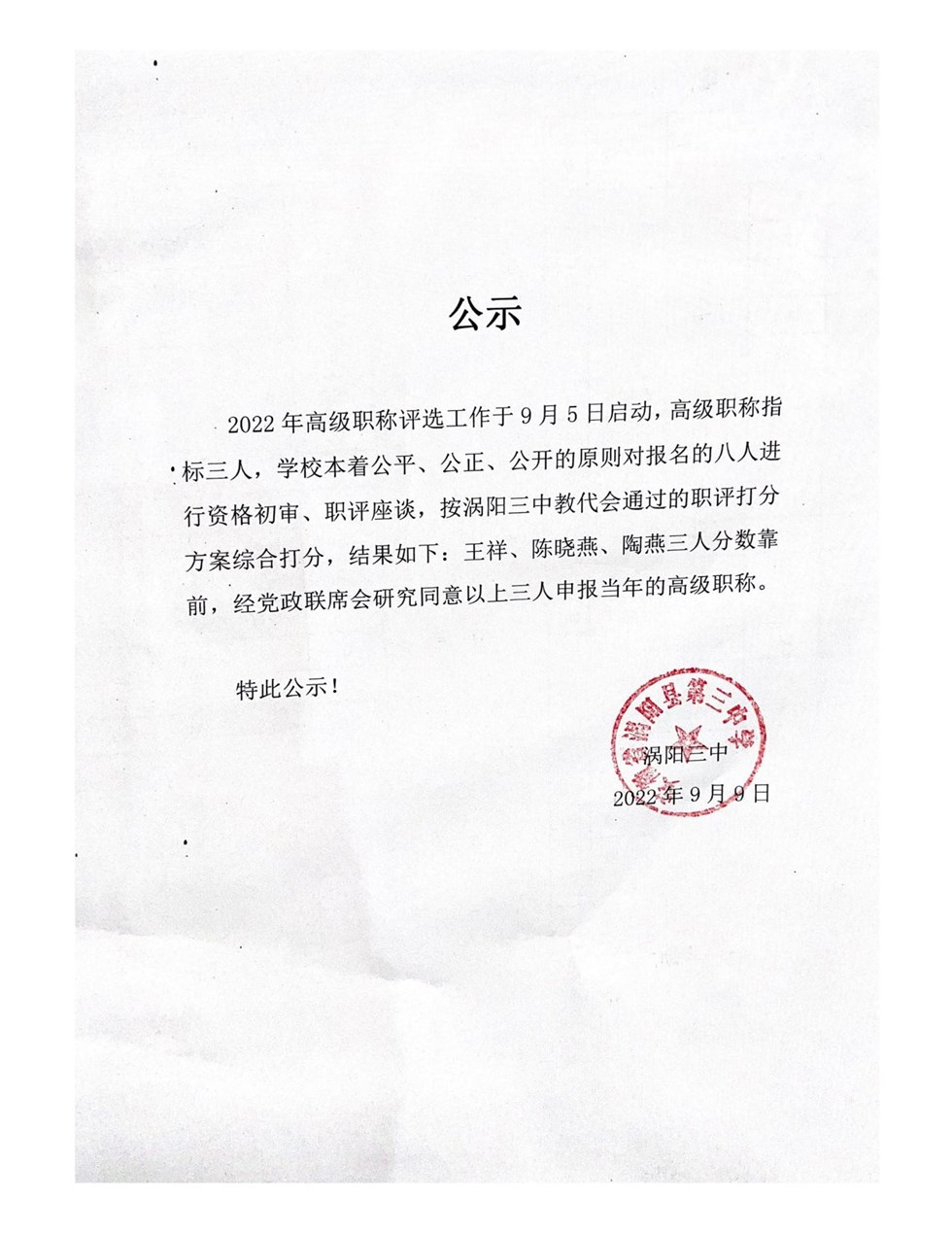 涡阳三中职称评聘的条件、程序、结果及争议解决办法