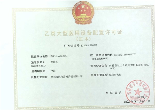 大型医用设备配置许可证