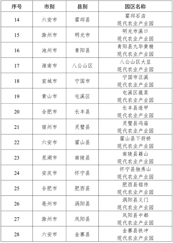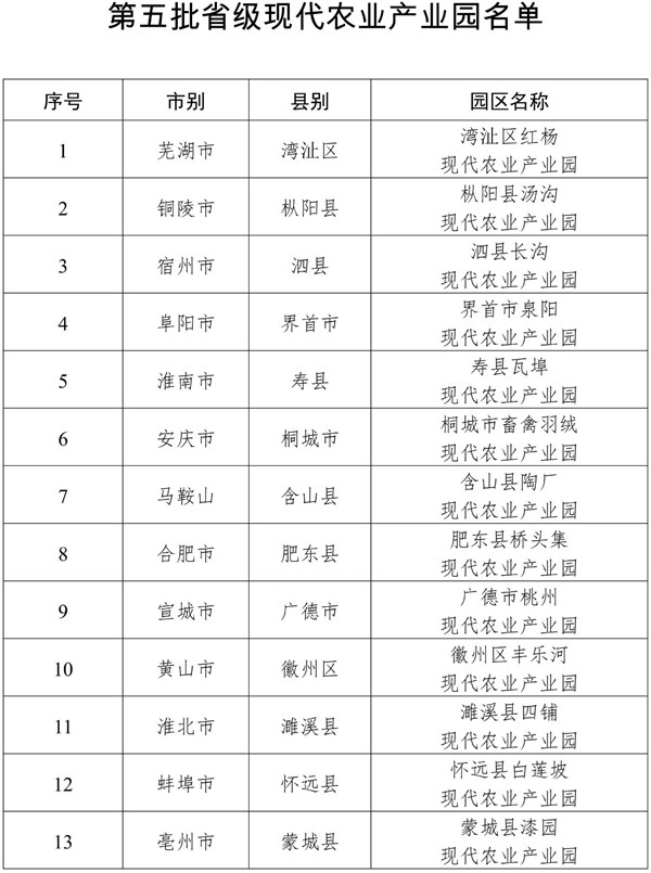 【转载上级】安徽省农业农村厅关于公布第五批省级现代农业产业园名单的通知
