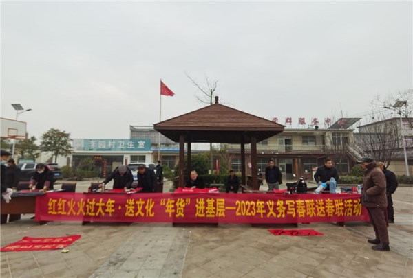 上午9点半,在义门镇团结村党群服务中心门口,几张书桌一字排开,书法家们铺好宣纸、挥毫泼墨,新春的期望和祝福融入笔墨间。不一会儿,隶书、楷书、行书等不同样式的书法,便落在一张张喜庆的春联纸上。一副副寓意平安和谐、吉祥如意的墨香作品伴随着辞旧迎新的美好祝愿,带去了对广大群众的美好祝福,饱含着大家对新的一年美好期盼和祝愿。“以前都是到超市买印刷好的春联,花钱不说,感觉年味也淡了好多。今天不但领略了书法家们的风采,还能免费领取到自己心仪的春联。”今年66岁的义门镇李园村村民韩成琴收到火红的春联后连声感谢,满心喜悦地为活动点赞。