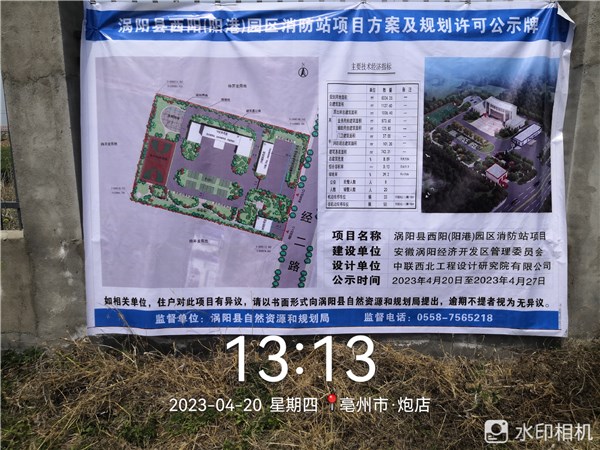 涡阳县西阳(阳港)园区消防站项目方案及规划许可公示