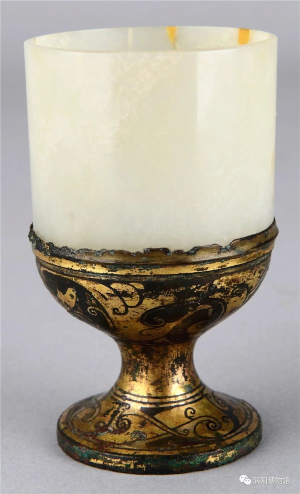 涡阳县博物馆馆藏:错金铜座白玉杯(西汉)