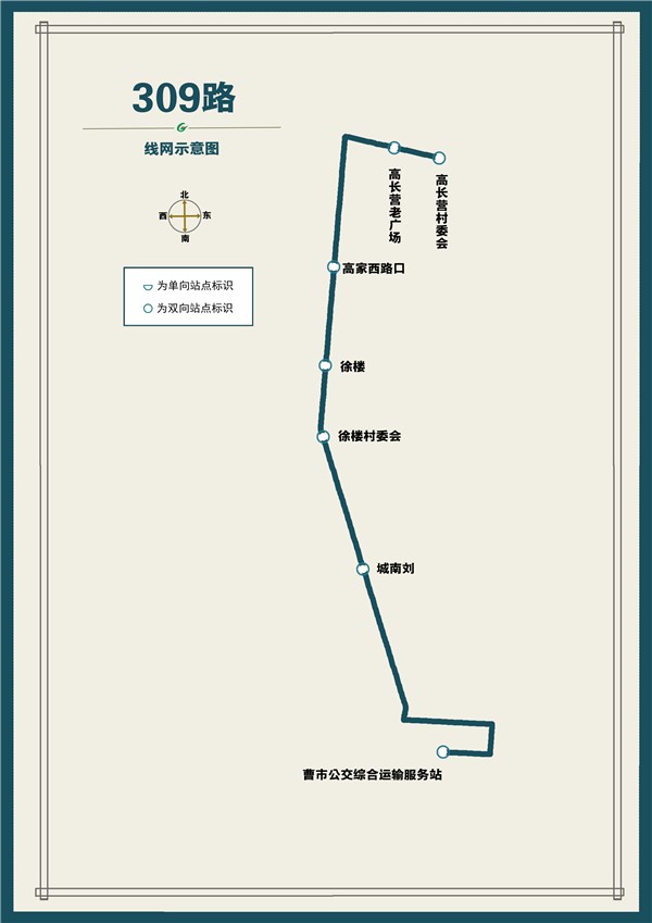 线路站点:曹市公交综合运输服务站、城南刘、徐楼村委会、徐楼、高家西路口、高长营老广场、高长营村委会。