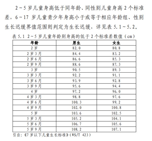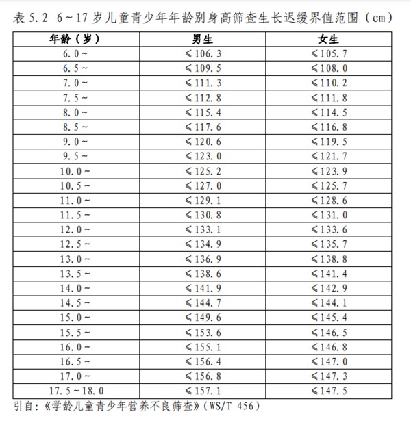 不同年龄段儿童青少年生长迟缓判定: