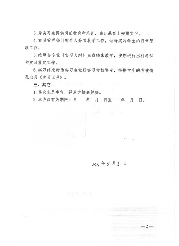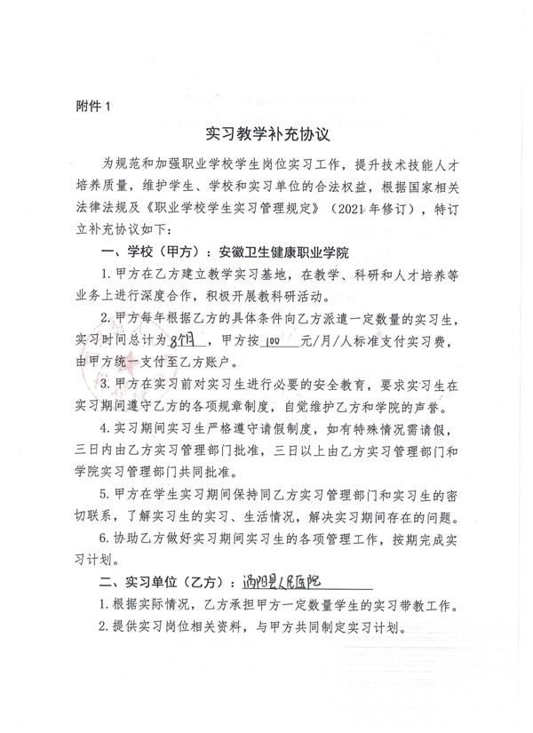 安徽卫生健康学校实习协议