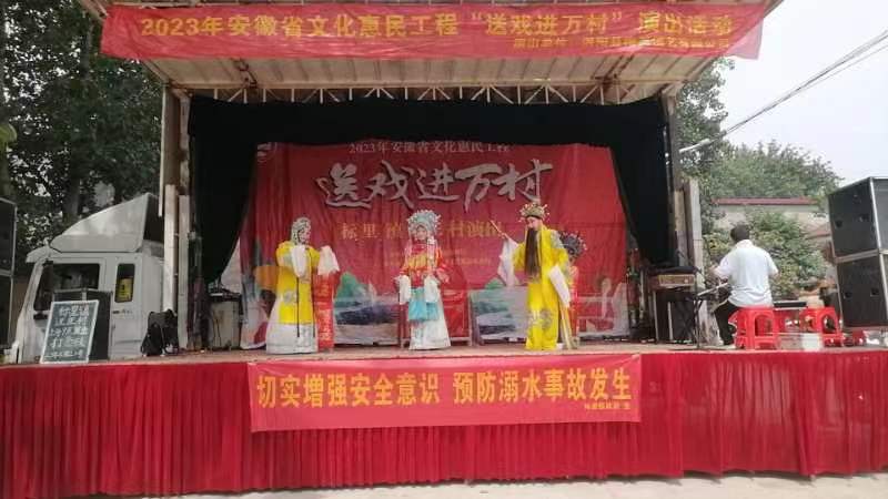 为弘扬传统文化,丰富群众文化生活,6月21日标里镇文广站开展了送戏进村活动。台上演出惹人驻足,借助舞台前人流量较大的形势,悬挂宣传条幅,进行预防溺水的宣传。