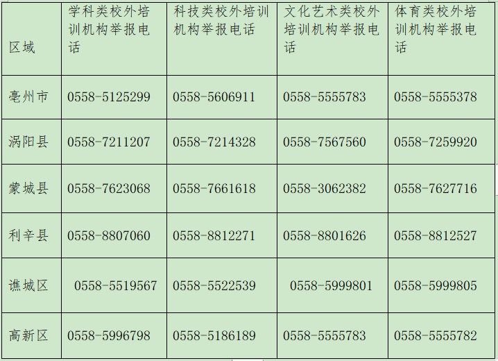 亳州市校外培训机构“白名单”