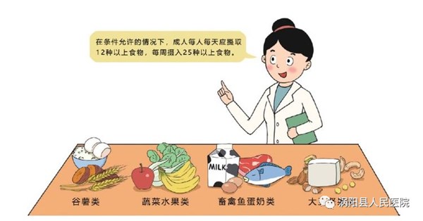 平时应该以低盐、低脂肪、低糖、低热量、高纤维素、高维生素、适当蛋白质的饮食为主。选择多种食物,达到营养合理,以保证充足的营养和适宜的体重(18.5 kg/㎡≤体质指数BMI<24.0 kg/㎡)。每日推荐摄入谷薯类,蔬菜、水果类,肉、禽、鱼、乳、蛋类,豆类,油脂类共五大类食品。做到主食粗细搭配。