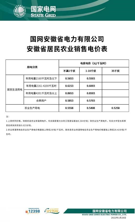 居民+农业生产电价格公示