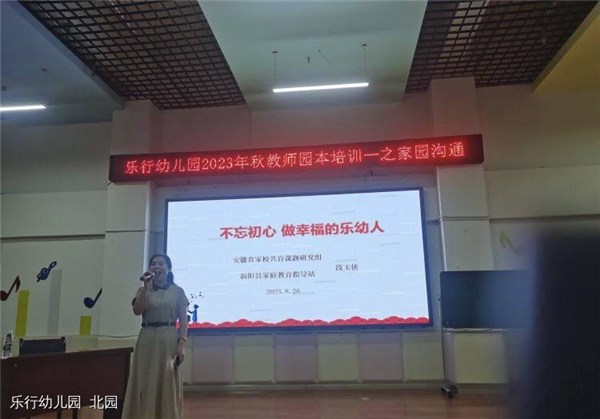 为进一步提高幼儿园教师的理论素养和实践能力,造就一支基础扎实,业务精良,能适应幼儿园改革、发展、创新的师资队伍,涡阳县乐行幼儿园于8月26日下午在南园进行了秋季学期园本课程专题培训。本次培训分为两个专题,分别是家园沟通和美术教育。