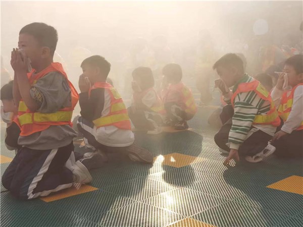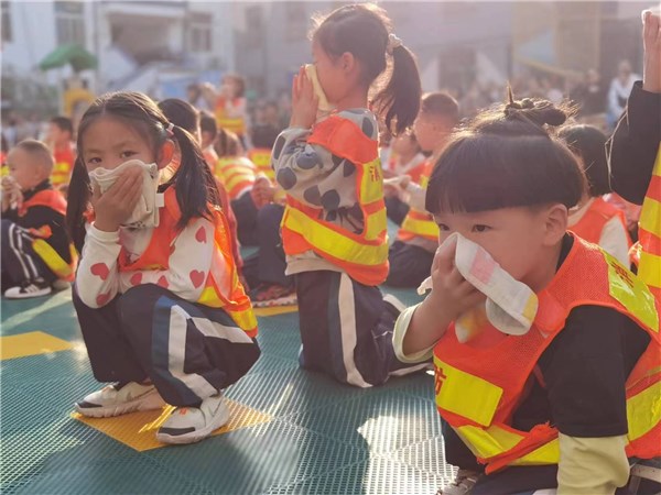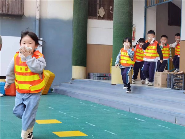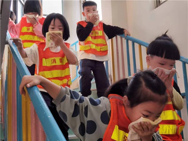 培训后,在一阵刺耳的防空警报声中开展了本次消防逃生演练活动。演练时,老师们按照预案进行了幼儿疏散逃离,(湿毛巾捂住口鼻→弯腰逃离现场→有序下楼不拥挤)有序快速的完成了逃生演练。