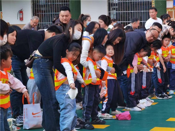 紧接着消防宣传员带领孩子与家长共同完了亲情游戏,在游戏中,家长与孩子们带入情感,一直默默为孩子付出,想方设法保护自己的宝贝,孩子们也感受到家长们的爱。父母是孩子的底气,每一次的撑腰都是一种“托举”