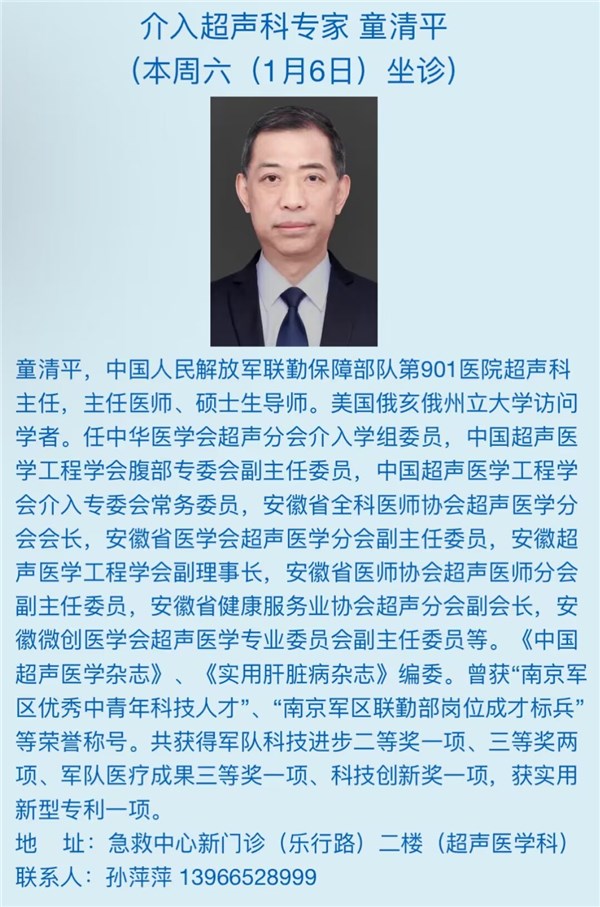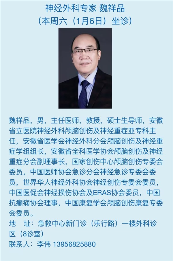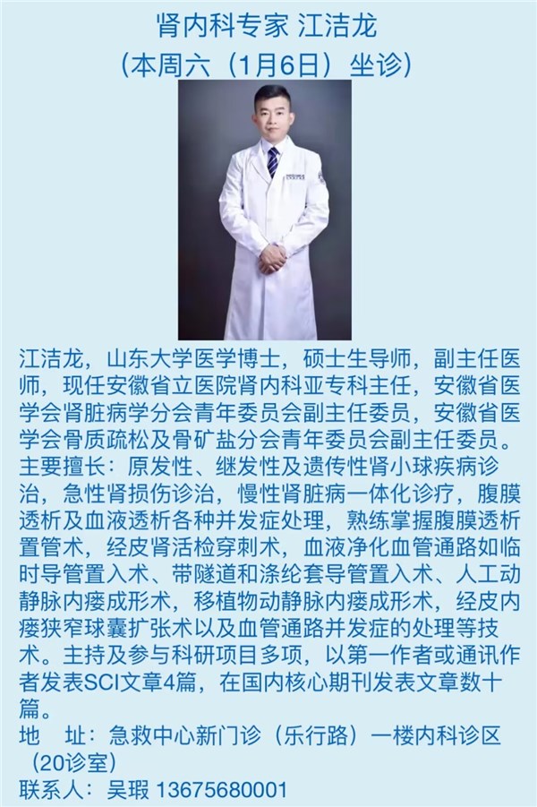 1月6日(本周六)安徽省立医院专家来我院坐诊信息
