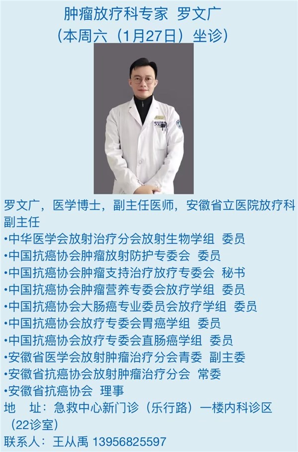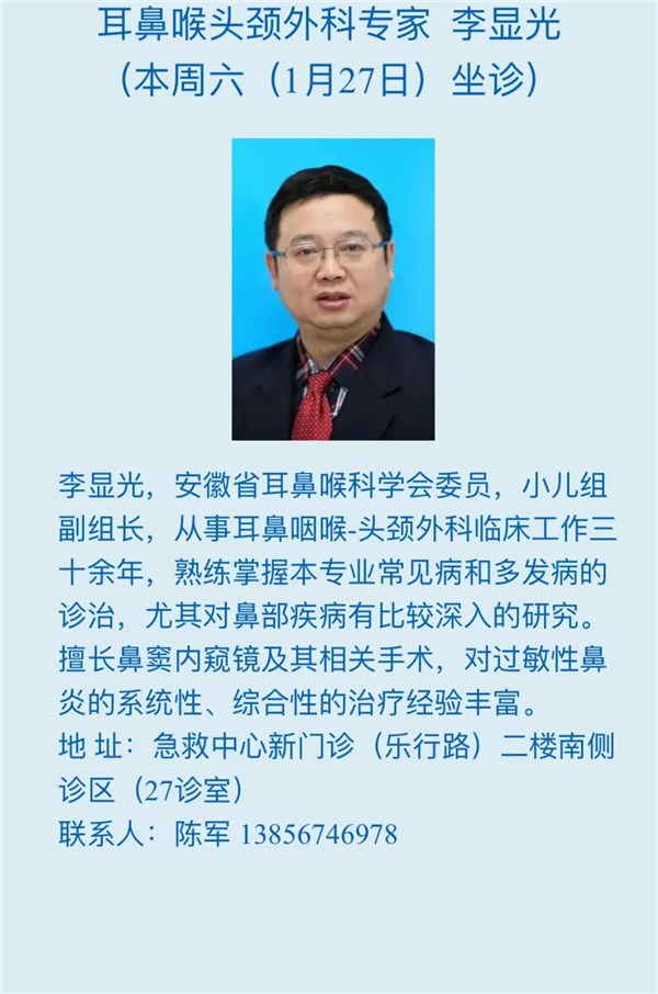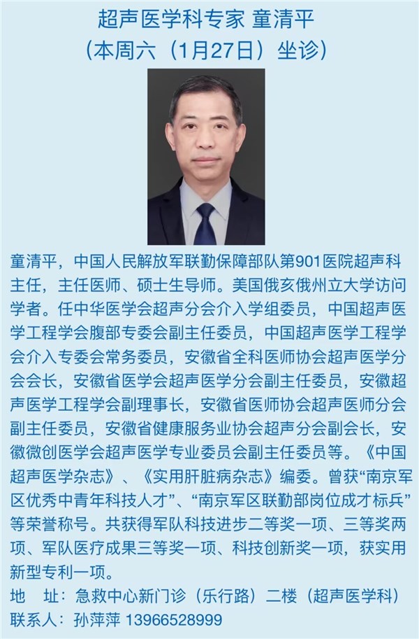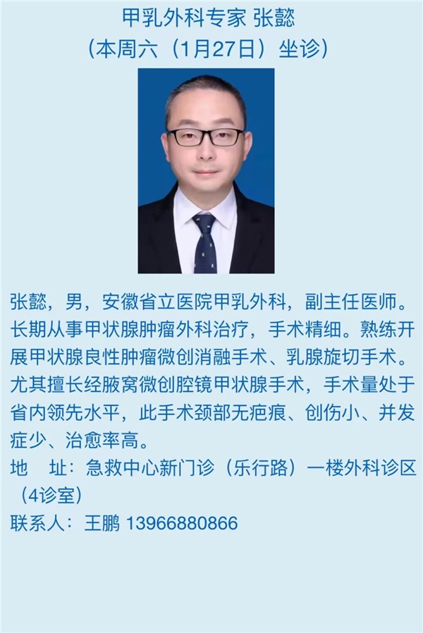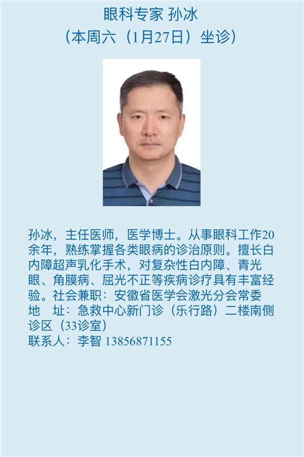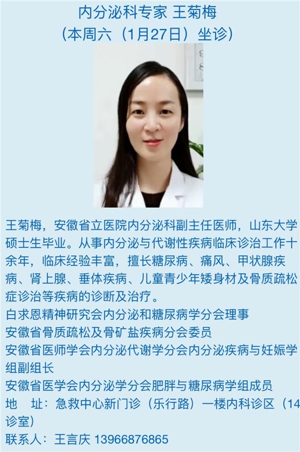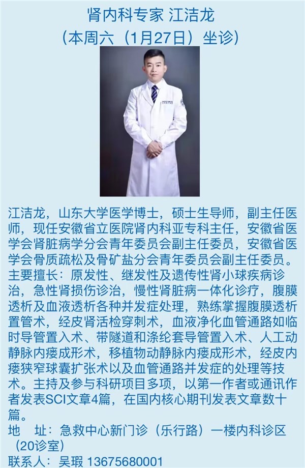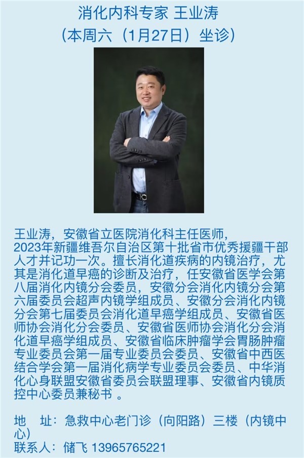 1月27日(本周六)安徽省立医院专家来我院坐诊信息