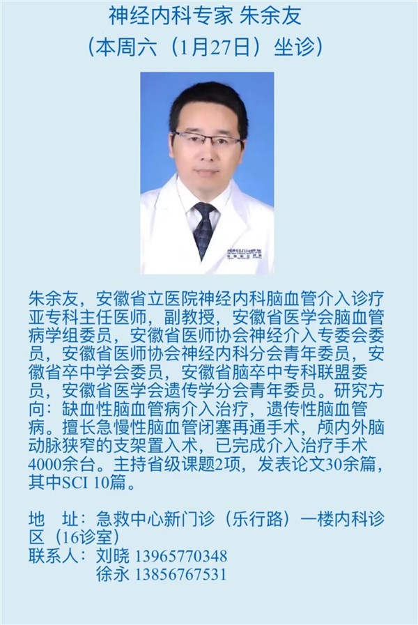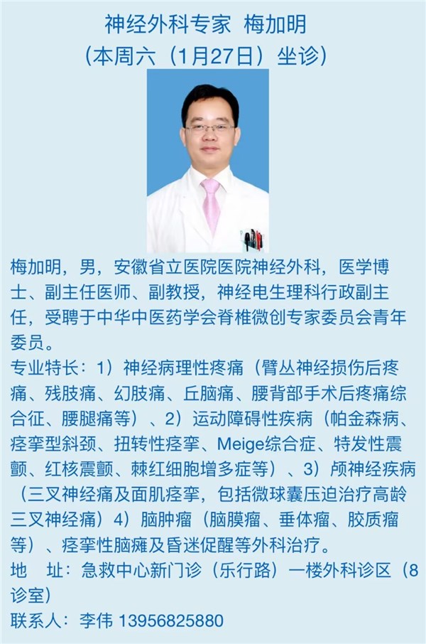 1月20日(本周六)安徽省立医院专家来我院坐诊信息