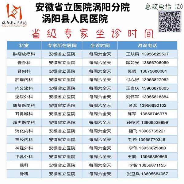 3月16日(本周六)安徽省立医院专家来我院坐诊信息