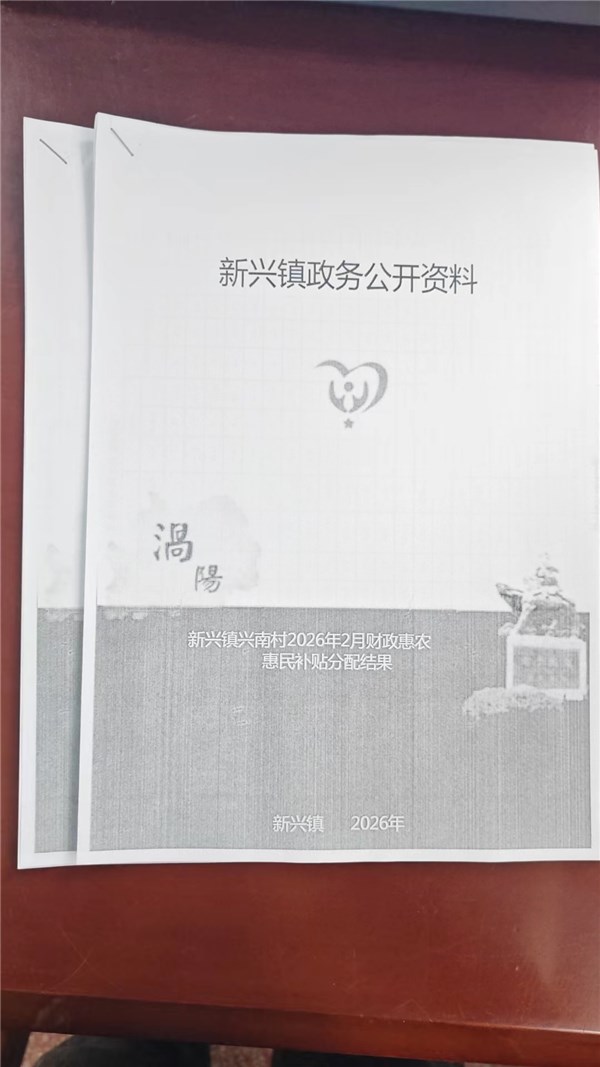 新兴镇兴南村2026年1-2月份财政惠民惠农补贴公示、资料留存