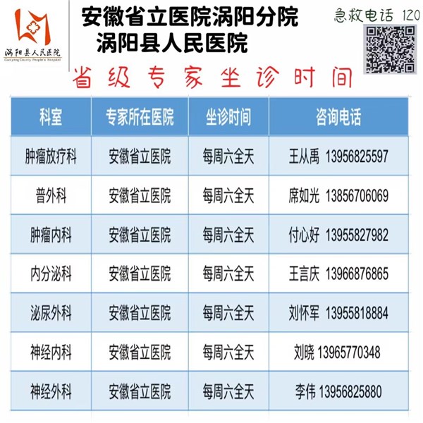 3月23日(本周六)安徽省立医院专家来我院坐诊信息