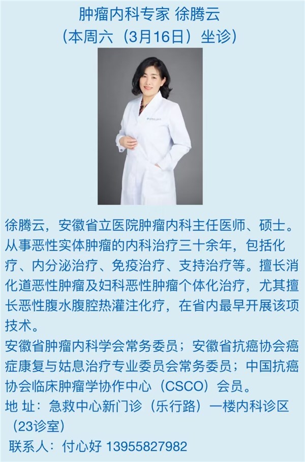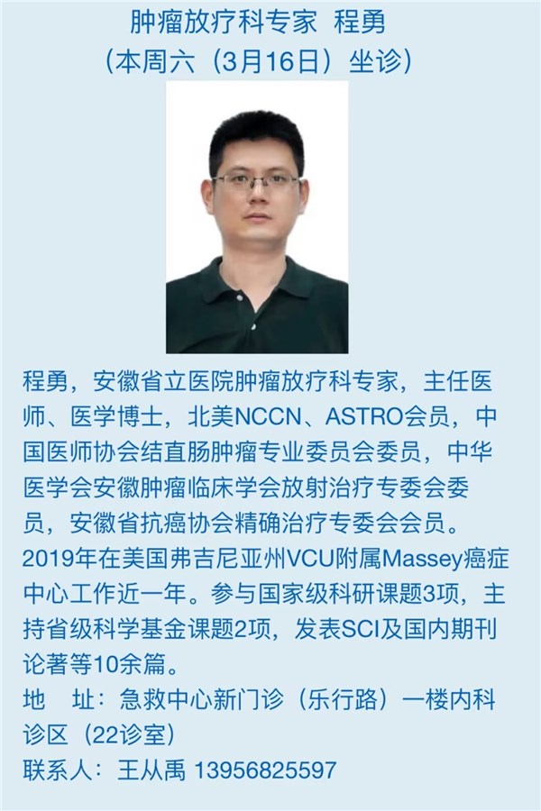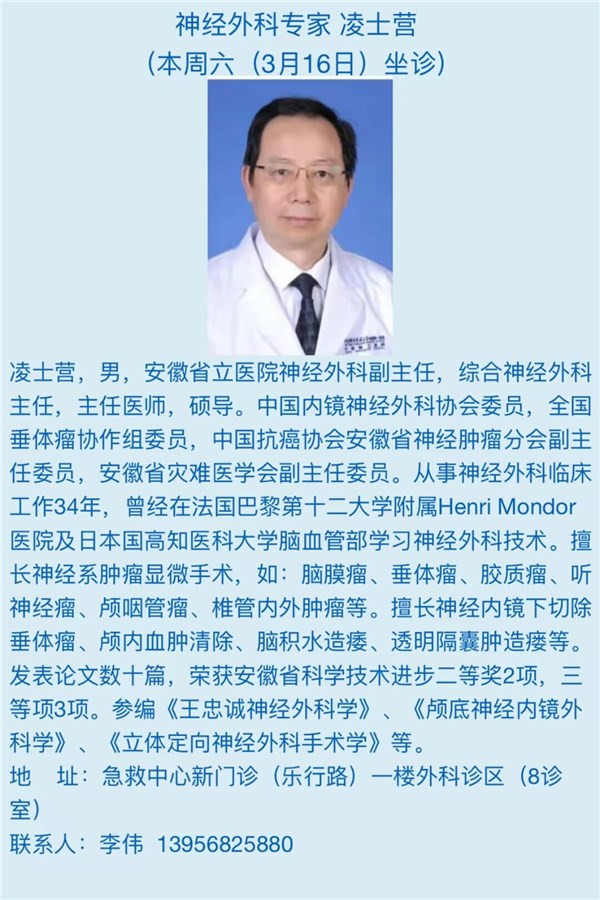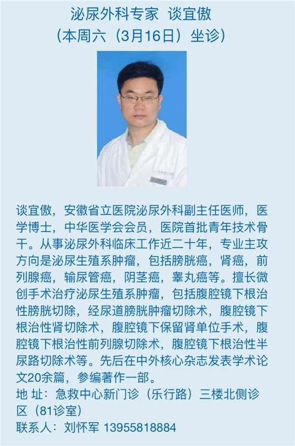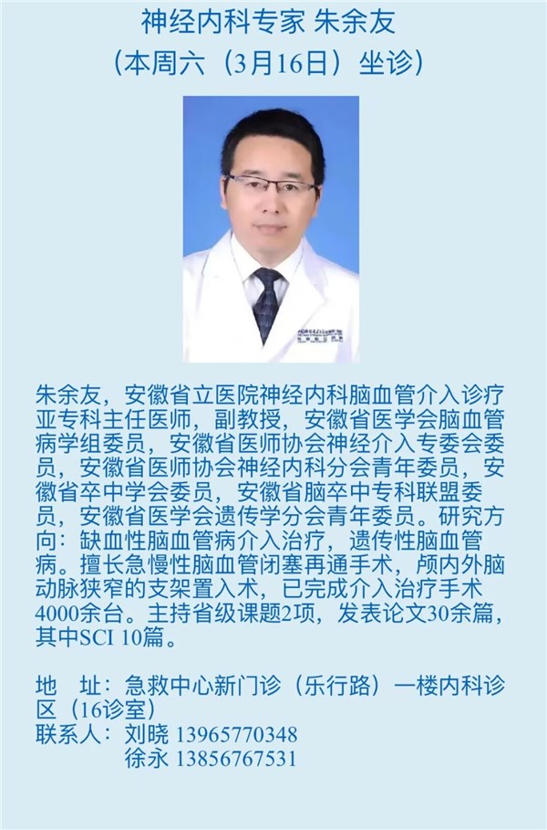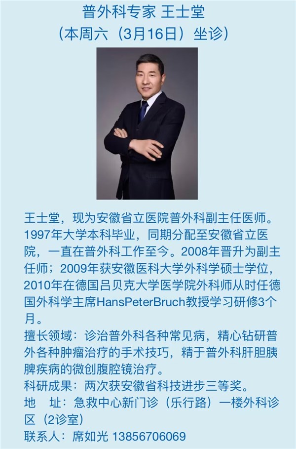 3月16日(本周六)安徽省立医院专家来我院坐诊信息