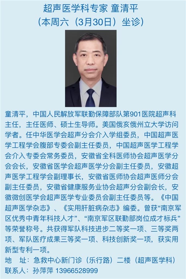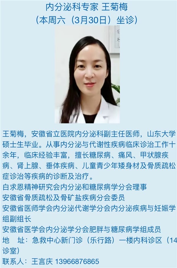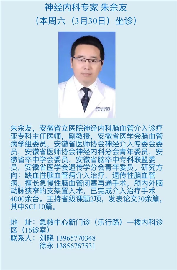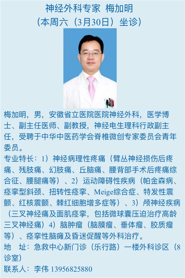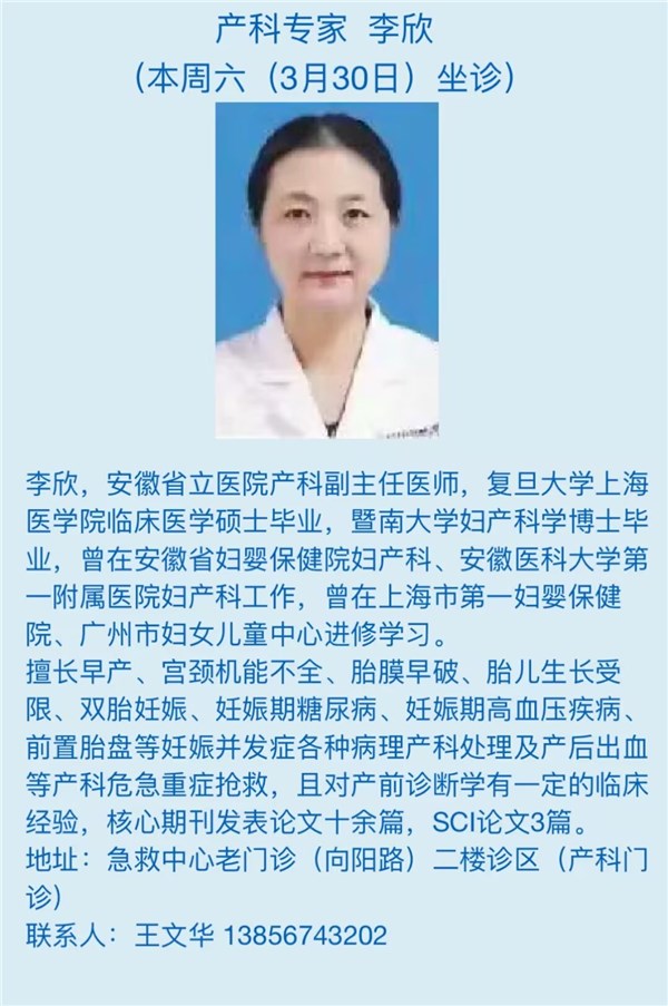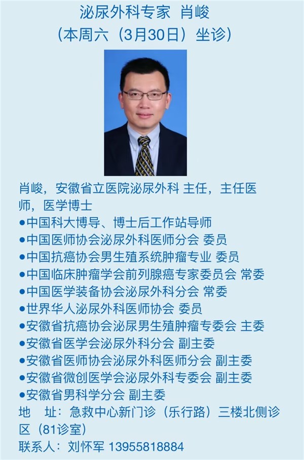 3月30日(本周六)安徽省立医院专家来我院坐诊信息