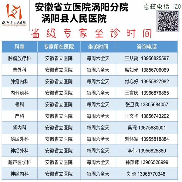 4月6日(本周六)安徽省立医院专家来我院坐诊信息
