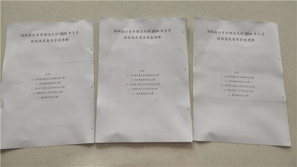 涡阳县公吉寺镇洼北村2024年1-3月份财政惠民惠农补贴公示资料留存