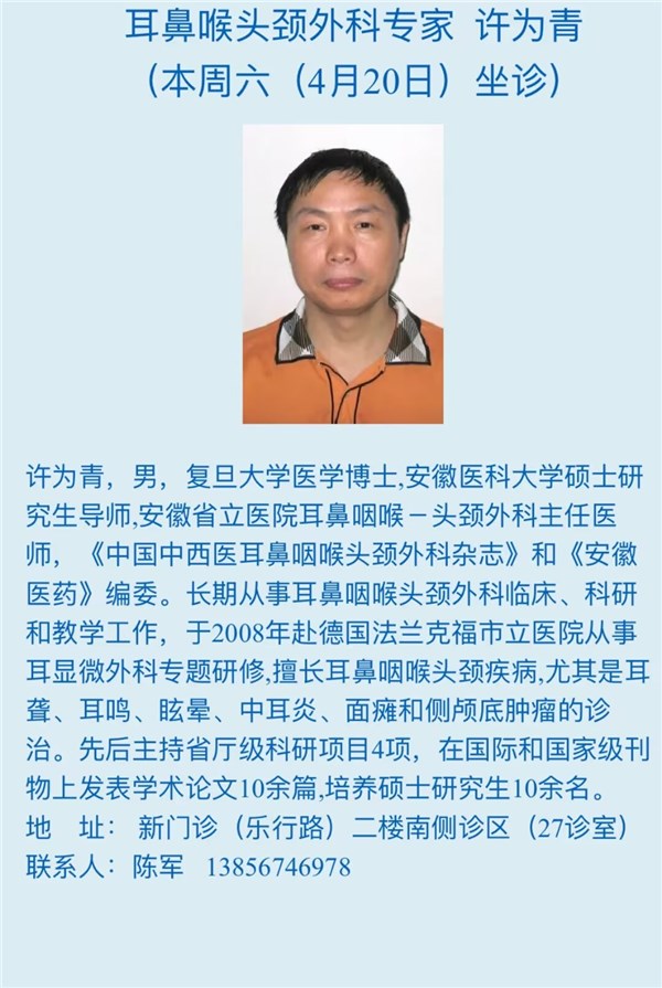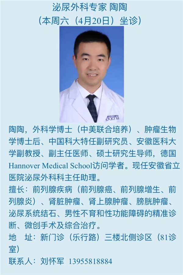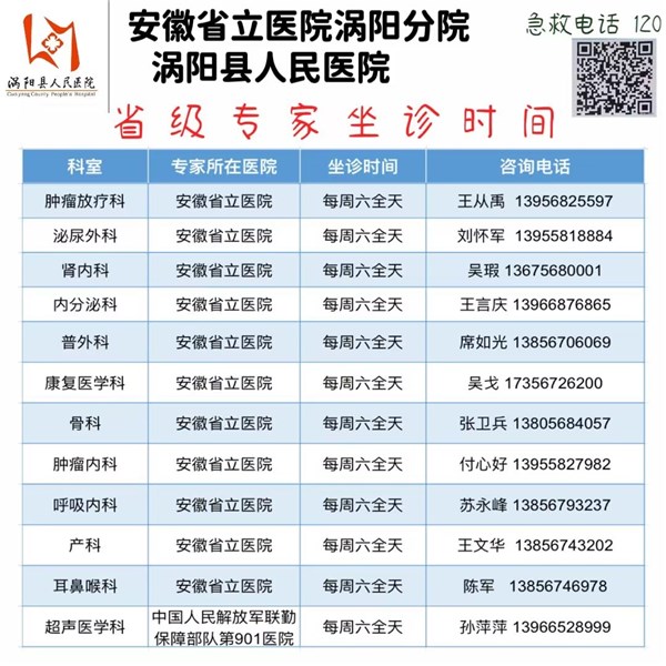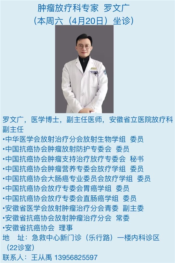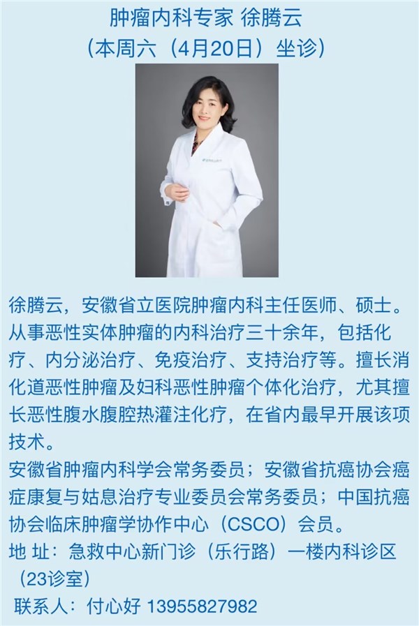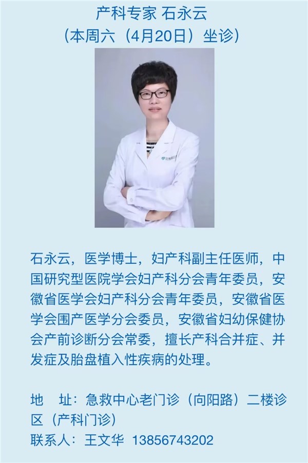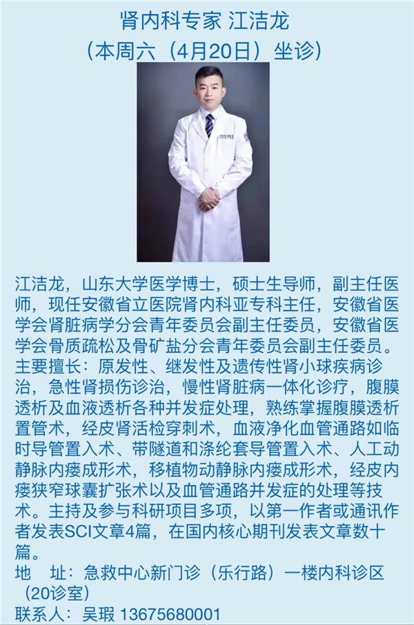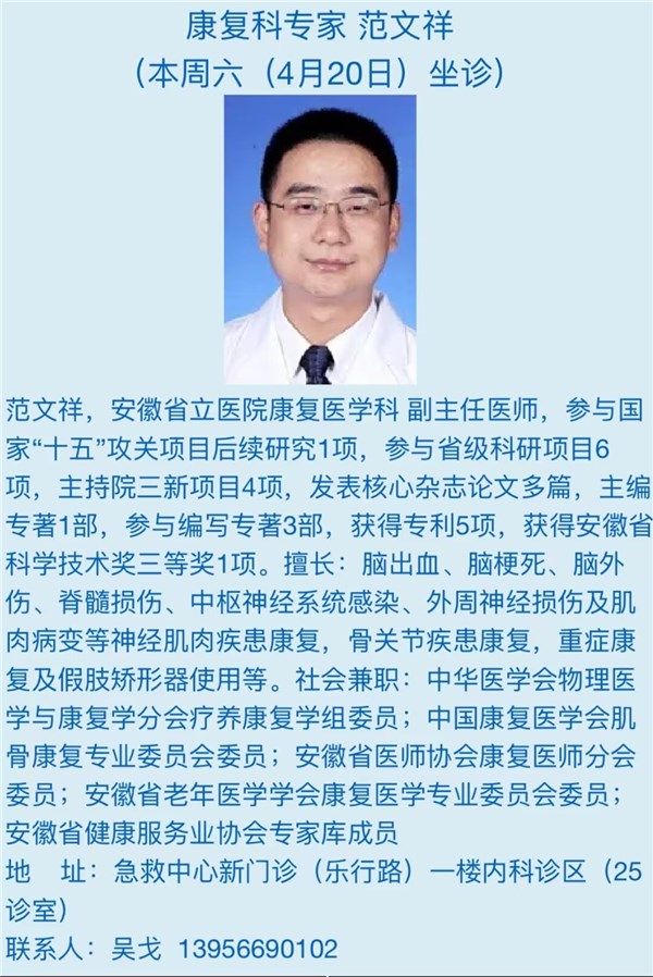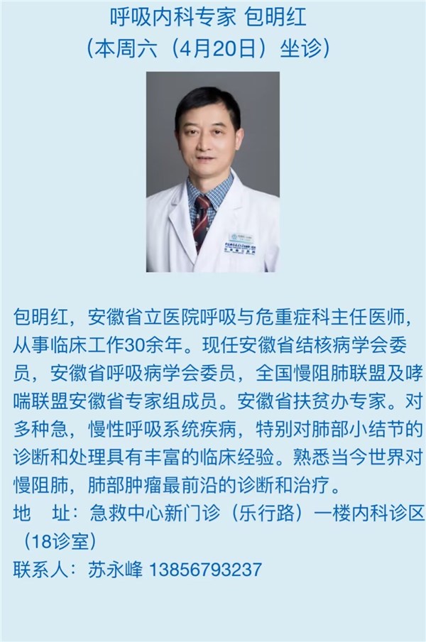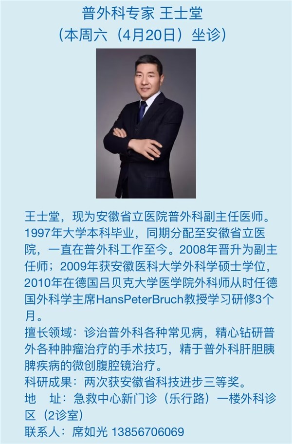 4月20日(本周六)安徽省立医院专家来我院坐诊信息