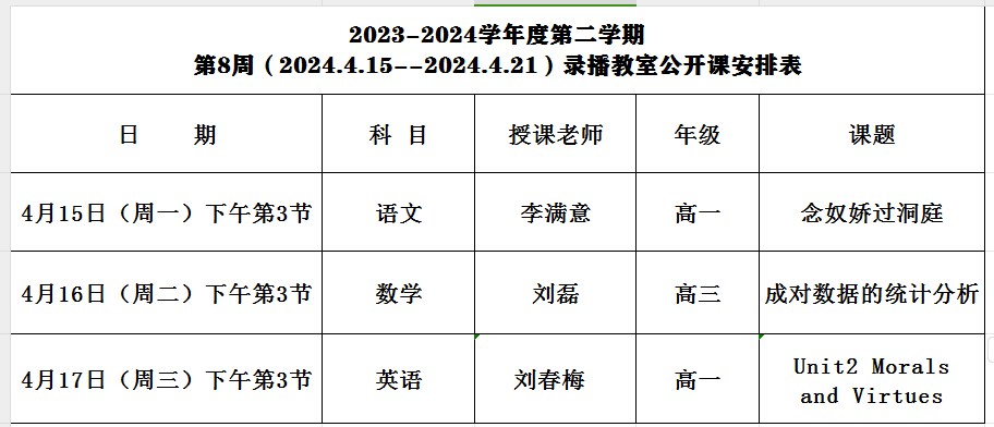 2023-2024学年度第二学期第八周公开课安排