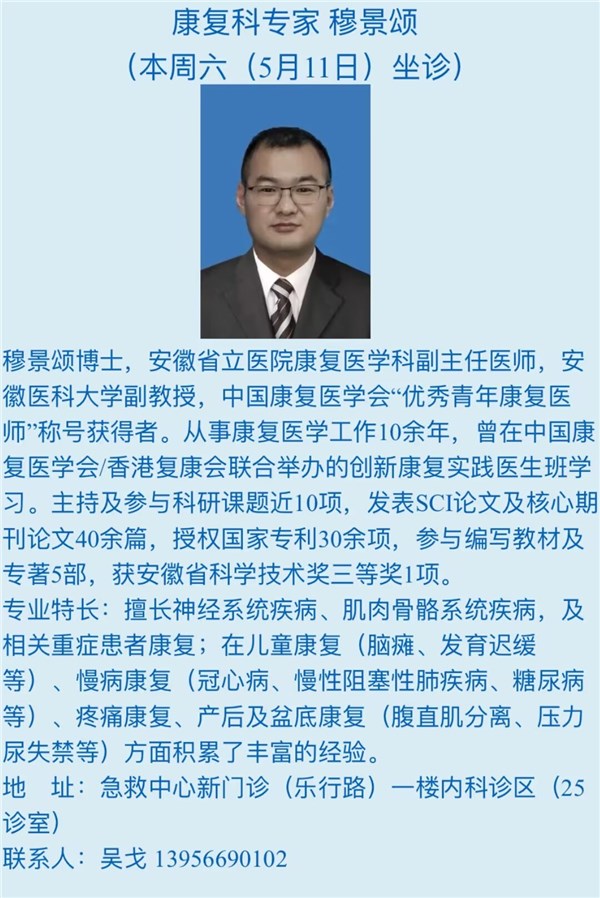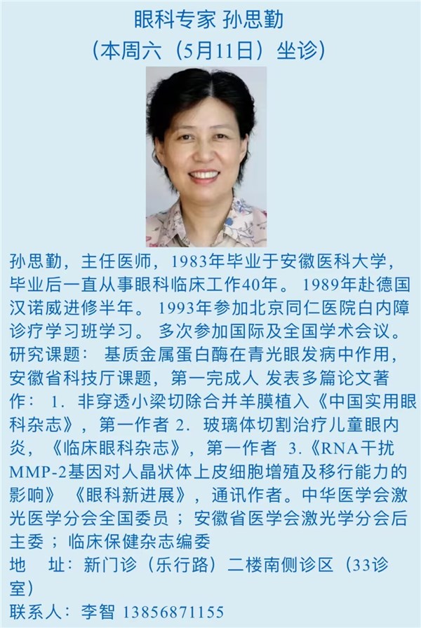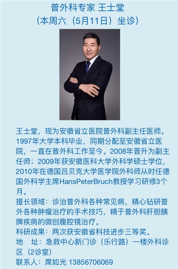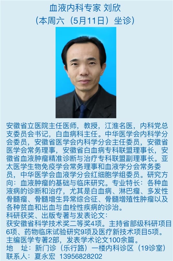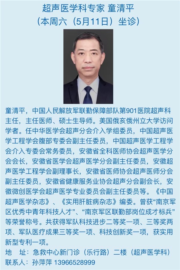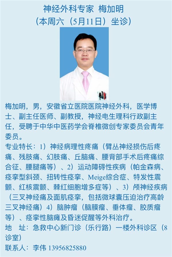 本周六(5月11日)省级专家坐诊信息