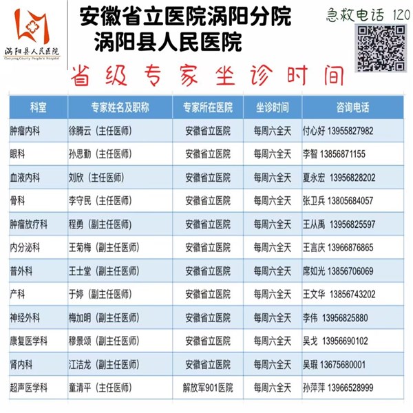 本周六(5月18日)省级专家坐诊信息
