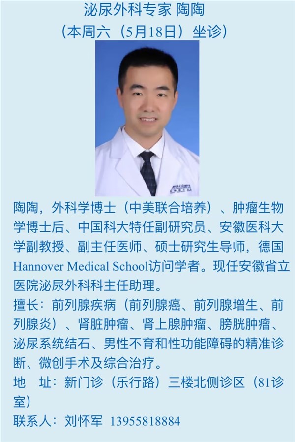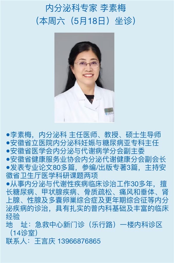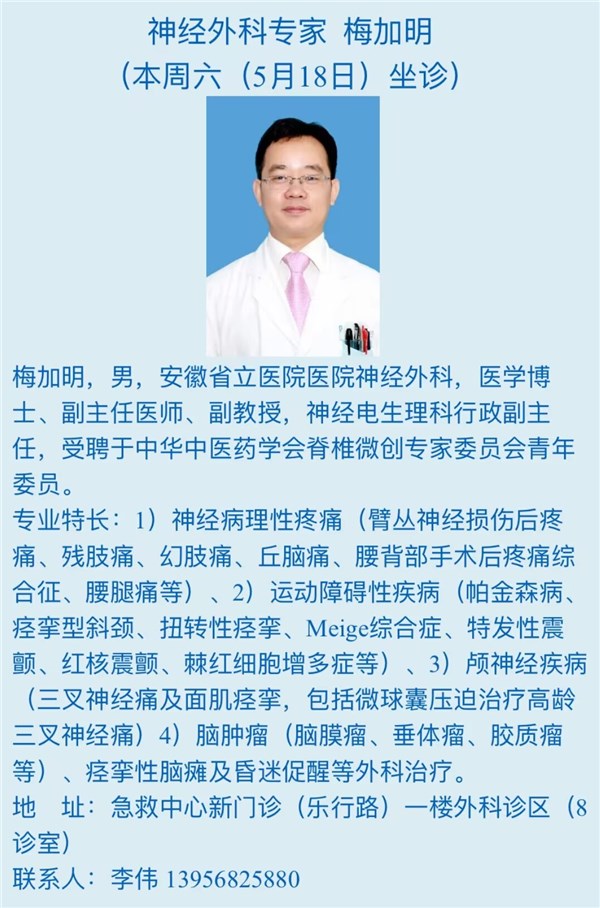 本周六(5月18日)省级专家坐诊信息