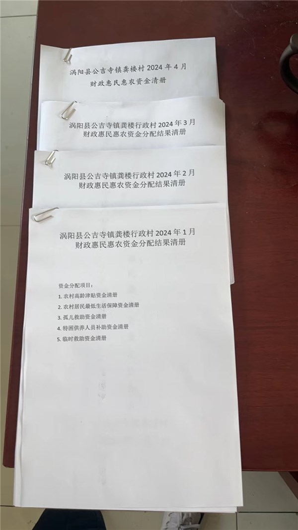涡阳县公吉寺镇龚楼村2024年1-4月份财政惠民惠农补贴公示资料留存