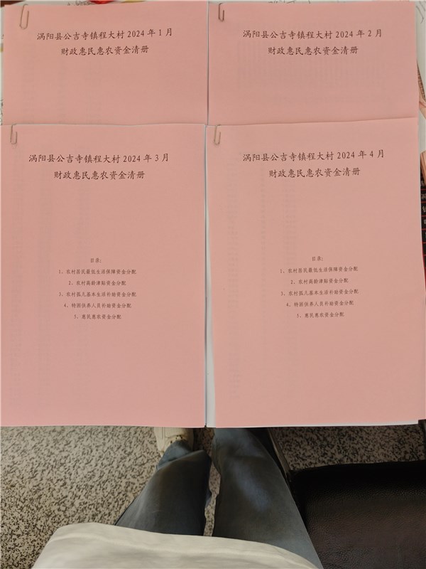 涡阳县公吉寺镇程大村2024年1-4月份财政惠民惠农补贴公示资料留存