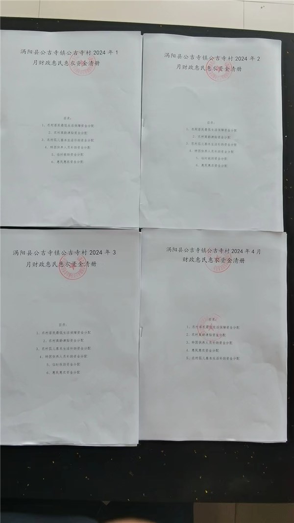 涡阳县公吉寺镇公吉寺居委会2024年1-4月份财政惠民惠农补贴公示资料留存
