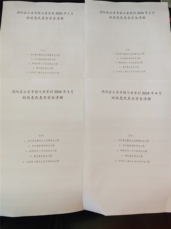 涡阳县公吉寺镇马老家村2024年1-4月份财政惠民惠农补贴公示资料留存